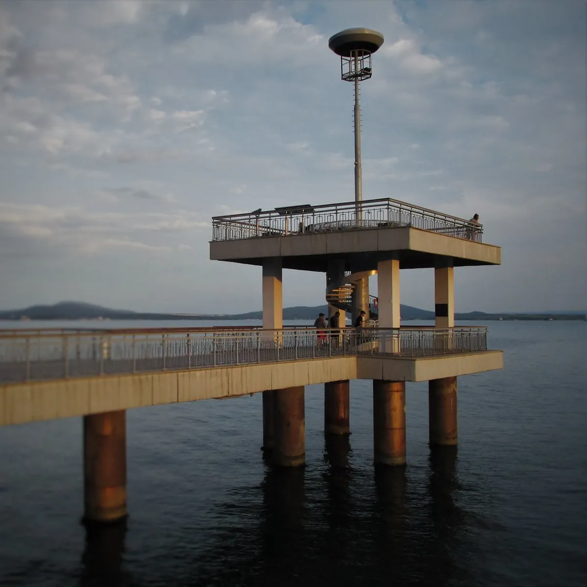 The structure itself features two levels that provide different heights for viewing the surrounding scenery and the water. The lower level brings you closer to the rhythm of the waves crashing against the strong concrete pillars. The upper level offers a wide view of the Port of Burgas and the nearby lighthouse tower. This elevated position is ideal for seeing the large ships entering the harbor under the purple evening sky. Most people spend at least thirty minutes here just taking in the vastness of the open sea.