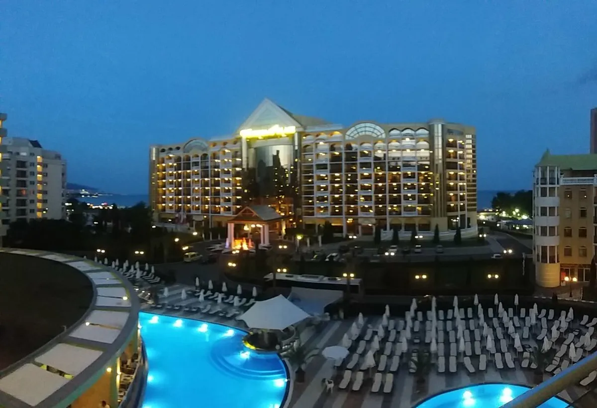 Using a zoom lens will help you capture specific city landmarks. Look for the Hotel Bulgaria tower rising above the other structures. You can also see the central beach stretching along the coast. The perspective from the water makes the city feel very organized.