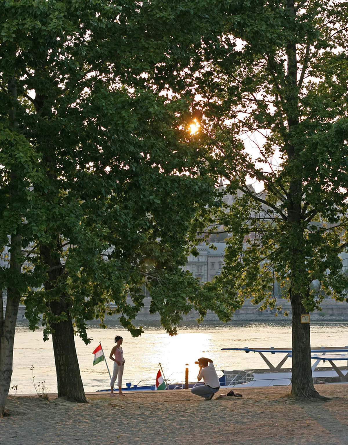 Where is the exact best spot for taking sunset photos by the Danube river?