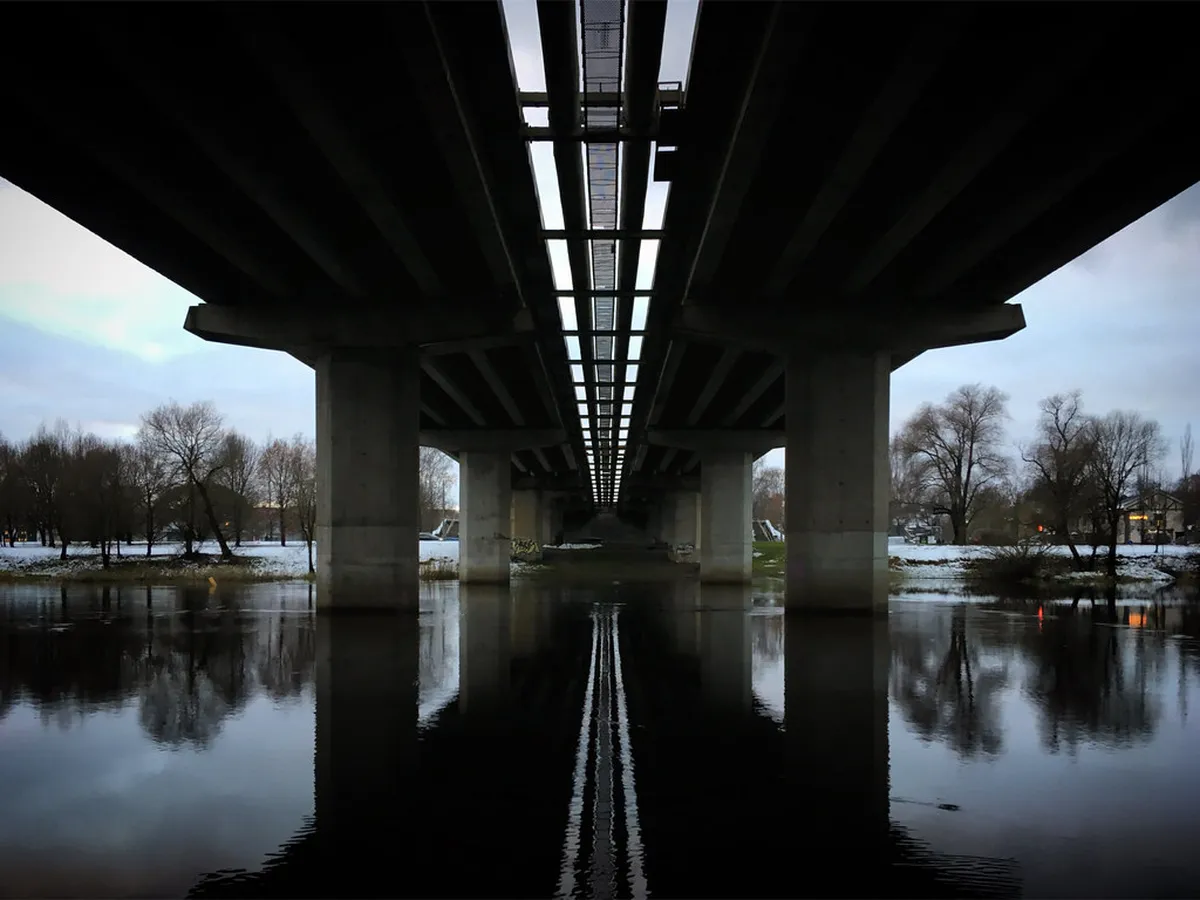You cannot access the bridge deck directly from the lower riverbank walking path. You must walk to the official road entrance located further inland. Crossing the bridge on foot requires following specific lanes for pedestrian safety.